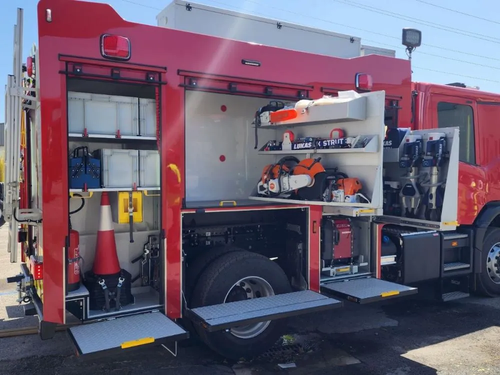 O veículo está equipado com 96 ferramentas e equipamentos de busca, resgate e salvamento, todos com certificação europeia. O tanque de água tem capacidade para 4 mil litros e o caminhão conta com um canhão monitor.