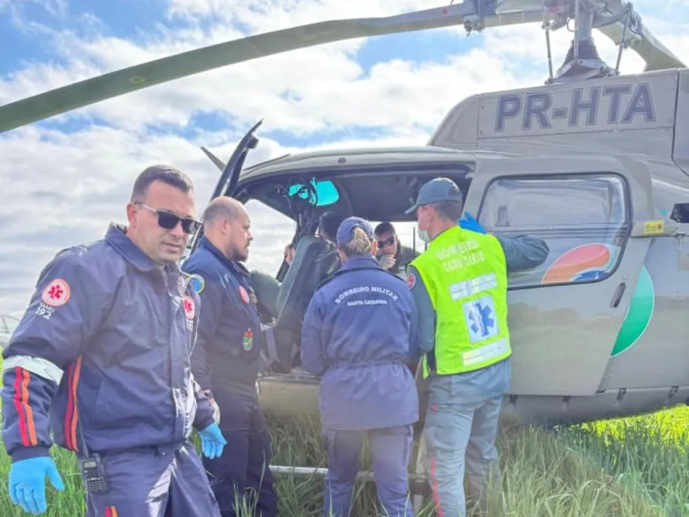 O atendimento foi realizado em conjunto entre as equipes e, após o protocolo de atendimento pré-hospitalar, o homem foi transferido para a aeronave do Águia da Polícia Militar (PMSC), que realizou o transporte aeromédico até o Hospital Regional de Rio do Sul.