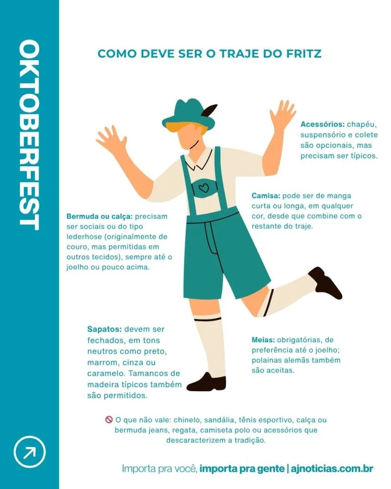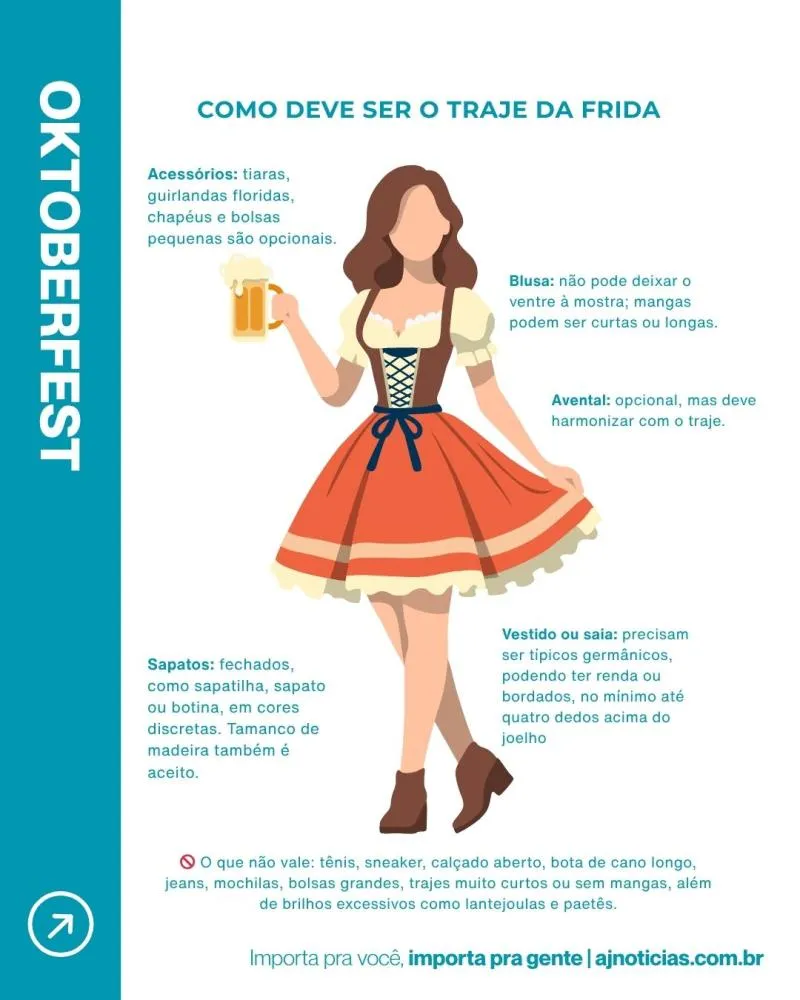 Usar traje típico durante a Oktoberfest Blumenau não é apenas uma forma de entrar no clima da festa: é também um requisito para ter direito a meia-entrada. Mas, para ser aceito como oficial, o traje precisa seguir regras definidas por uma portaria municipal.