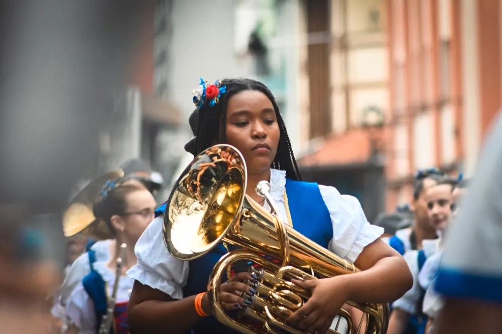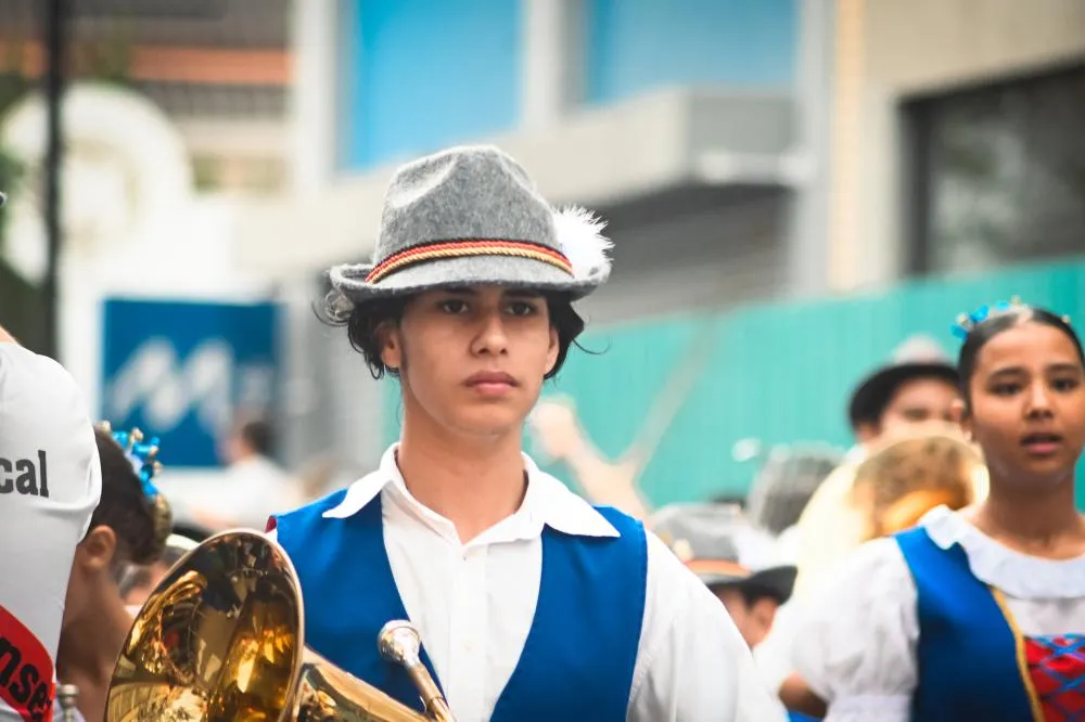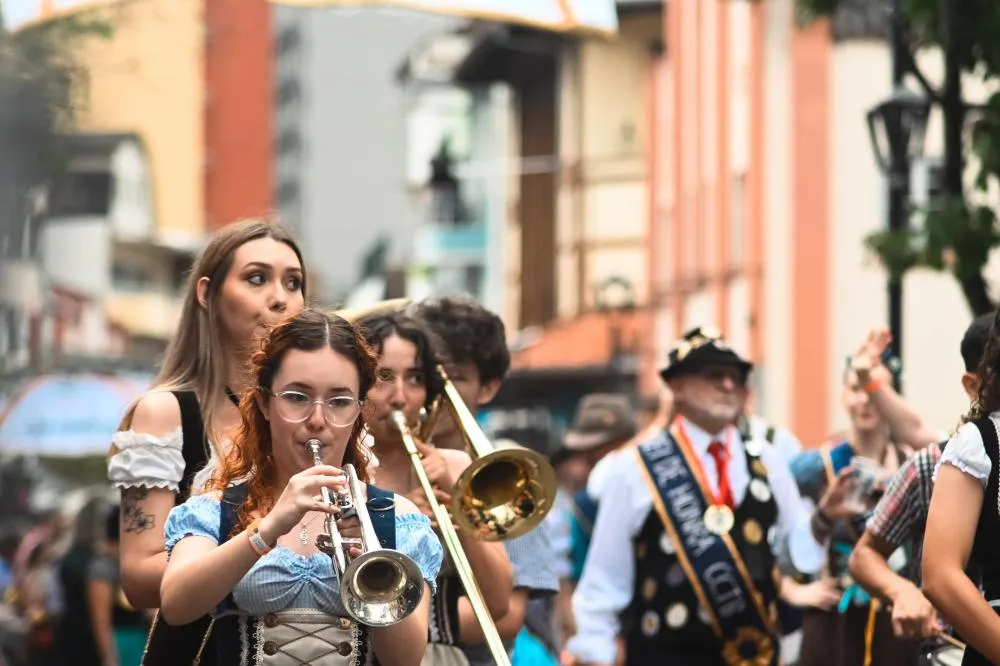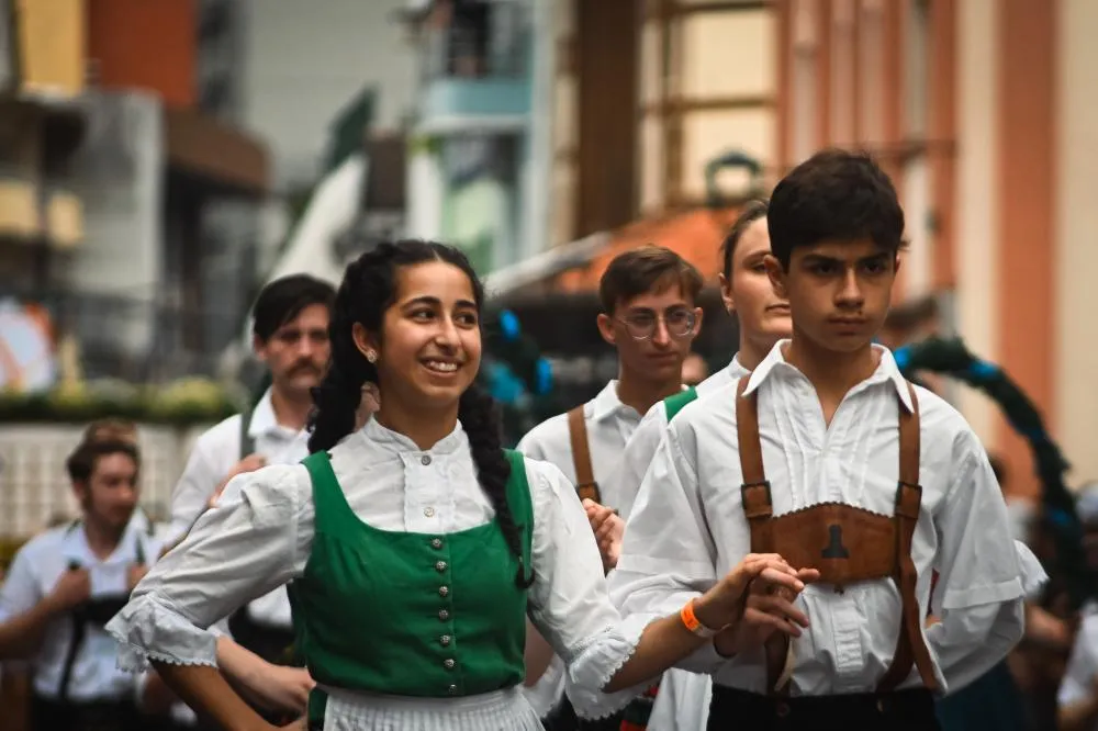 Carros alegóricos, grupos folclóricos, bandinhas típicas e clubes de caça e tiro desfilaram pela rua mais charmosa da cidade, compartilhando um pouco da tradição e da cultura germânica que marcam a história de Blumenau.