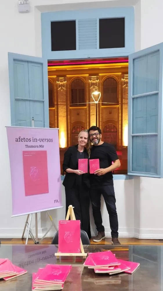 #AFETOS - No último sábado, 25, a Psicóloga e Psicanalista Thamara Mir, filha do artista visual hispano-brasileiro Antonio Mir (in memoriam) lançou seu primeiro livro de poesia, afetos in-versos, na Casa da Cultura Dide Brandão, em Itajaí. A obra publicada pela Editora M.inimalismos de SP, é uma colentânea de escritos inspirados em vivências pessoais e na escuta clínica. Poemas atravessados por conceitos da psicanálise, pelo amor, pela fantasia, por vivencias de luto, ressignificação e pela transitoriedade, compõem afetos in-versos, que está à venda pelo site da editora.
