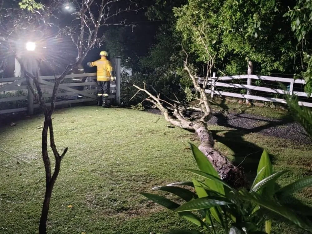 A segunda ocorrência foi registrada na madrugada, por volta de 1h, na Rua Presidente Costa e Silva. De acordo com os bombeiros, a Defesa Civil Municipal acionou a equipe após um ipê, com cerca de nove metros, cair no pátio de uma casa, atingindo o portão e a cerca.