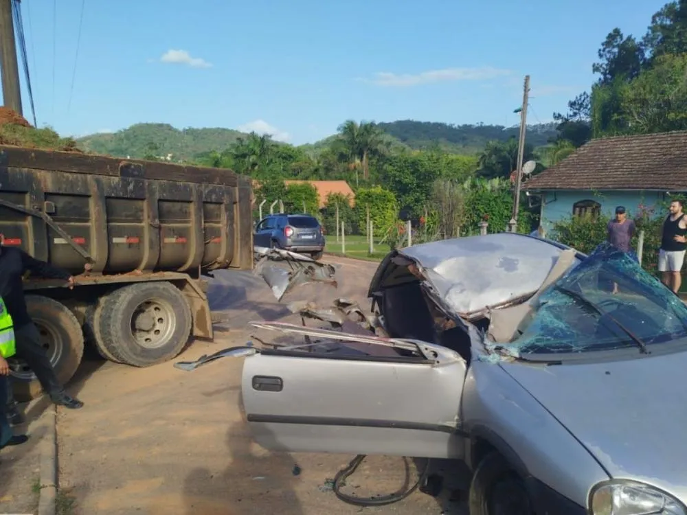 Uma batida entre um carro e um caminhão-caçamba mobilizou o Corpo de Bombeiros Militar na tarde desta quinta-feira (20), em Timbó, no Vale do Itajaí. O acidente aconteceu por volta das 16h50 na Rua Osvaldo Cruz, no bairro Fritz Lorenz.