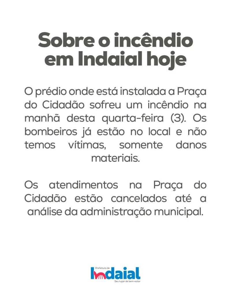 Em nota, a Prefeitura de Indaial informou que os atendimentos na Praça do Cidadão estão temporariamente suspensos até que seja feita avaliação técnica no local.
