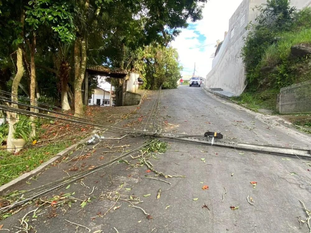 Entre as ocorrências registradas, foram três quedas de árvores em ruas, quatro quedas de árvores sobre casas, dois destelhamentos e duas quedas de postes. Todas as situações foram atendidas pelas equipes da Defesa Civil, e a Celesc foi acionada para realizar a troca dos postes danificados.