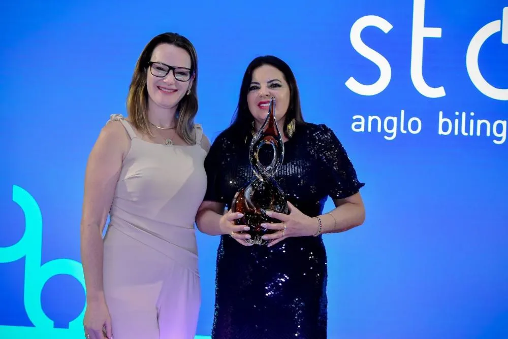 #RECONHECIMENTO - A educadora e empresária Elaine Coelho, à frente da Anglo Rede Sul, comandou uma emocionante festa que marcou o pré-lançamento da Start Anglo Bilingual School em Blumenau. No evento, que contou com mais de 200 convidados e várias apresentações especiais, Luiz Obregon e Thaise Bressanini (na foto com Elaine), da Labone Cristais, presentearam a CEO da rede com uma peça exclusiva. A escola, que abre em fevereiro na cidade, será a primeira unidade da franquia no Vale do Itajaí. Com 10 milhões de investimento, a escola bilíngue de alta performance, já presente no litoral e na serra catarinense, tem 5 mil metros quadrados e está instalada em um ponto estratégico do Bairro Victor Konder, em frente à Furb. Matrículas abertas!