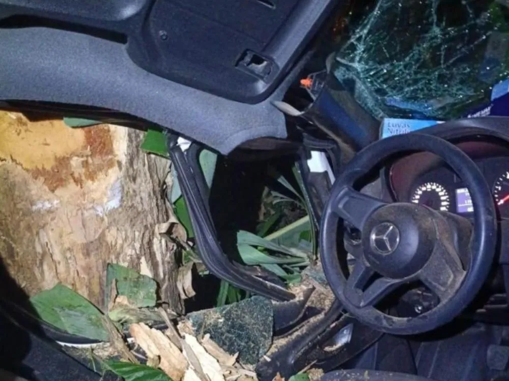 Na sequência, o homem assumiu a direção da ambulância e fugiu do local. Pouco depois, perdeu o controle da Van do Samu e bateu contra uma árvore.