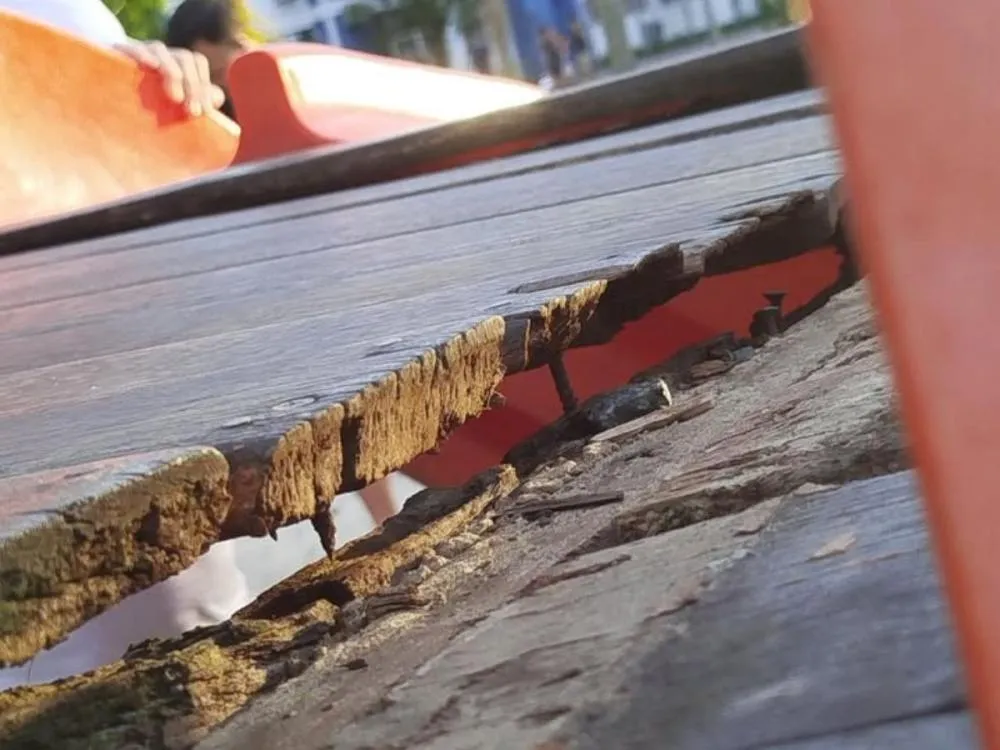 As condições do playground do Parque Ramiro Ruediger, em Blumenau, têm gerado preocupação entre pais e responsáveis que frequentam o espaço com crianças. Brinquedos feitos de madeira apresentam sinais visíveis de desgaste e envelhecimento, com partes da estrutura já cedendo com o uso.