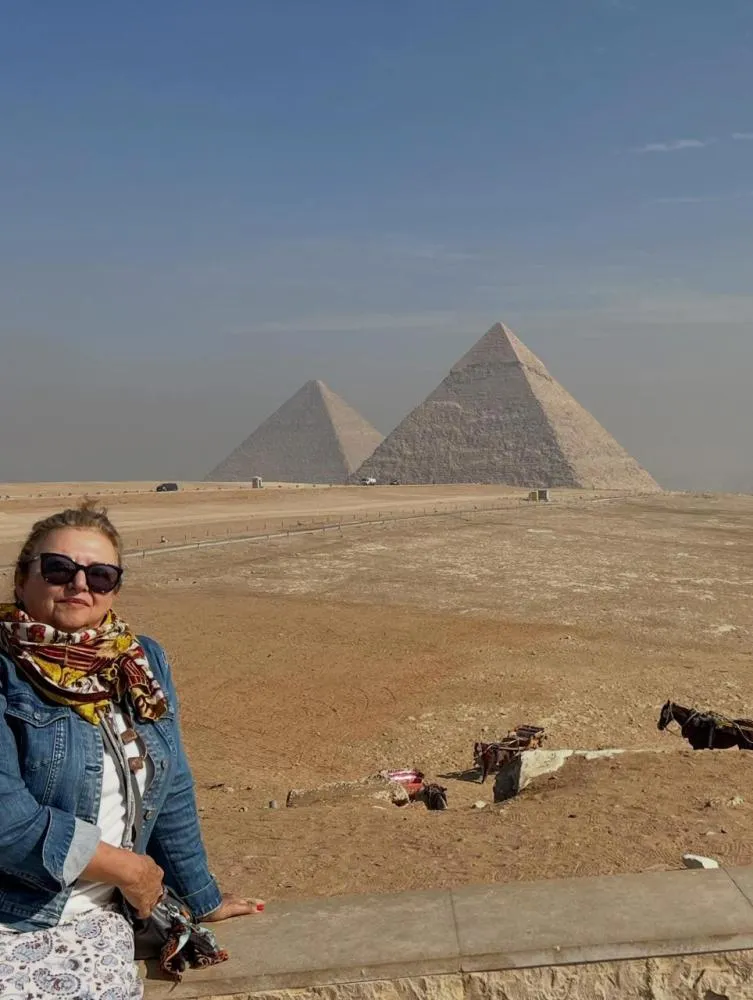 #VIAGEM - Claudete Mafra Wanderck está radiante cumprindo roteiro de ponta no Egito.