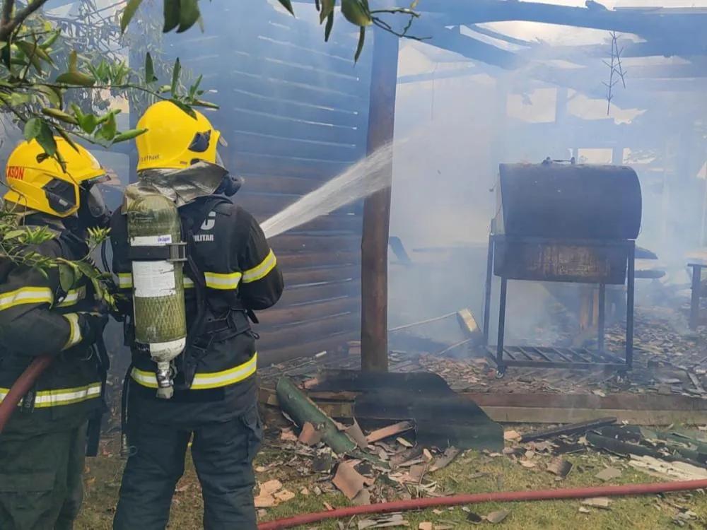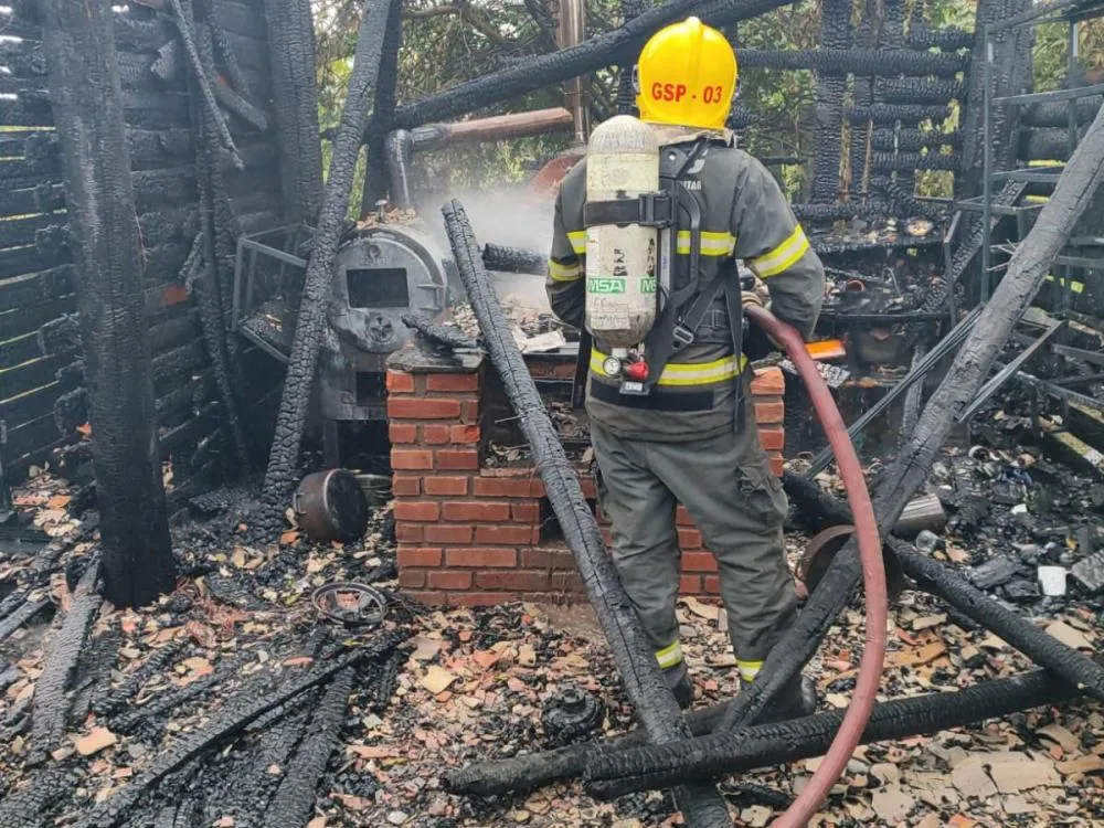 O incêndio destruiu completamente a casa, que possuía cerca de 65m². De acordo com as pessoas que estavam no local, o fogo começou em um forno, que estava sendo utilizado no momento.