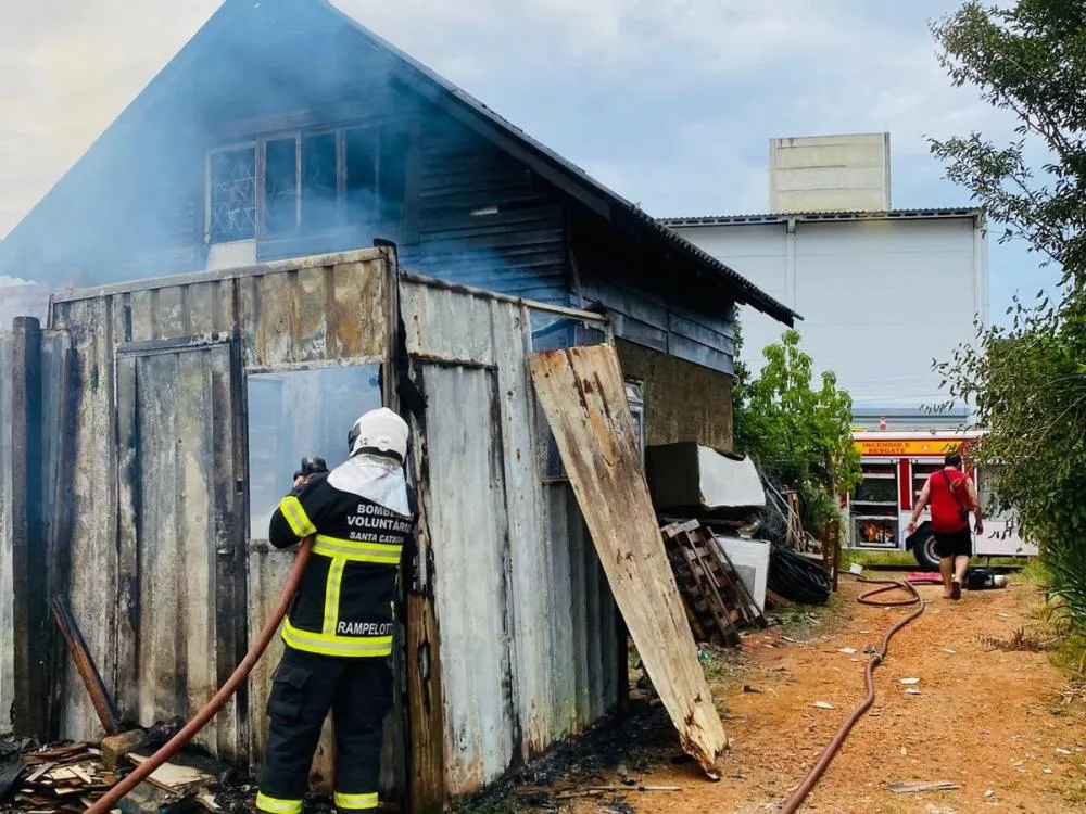 Um incêndio destruiu uma casa na tarde desta quinta-feira (29), no Centro de Ilhota, no Vale do Itajaí. Os Bombeiros Voluntários da cidade foram acionados para atender a ocorrência e, ao chegar ao local, a equipe encontrou uma residência de dois pisos, de construção mista, completamente tomada pelas chamas.