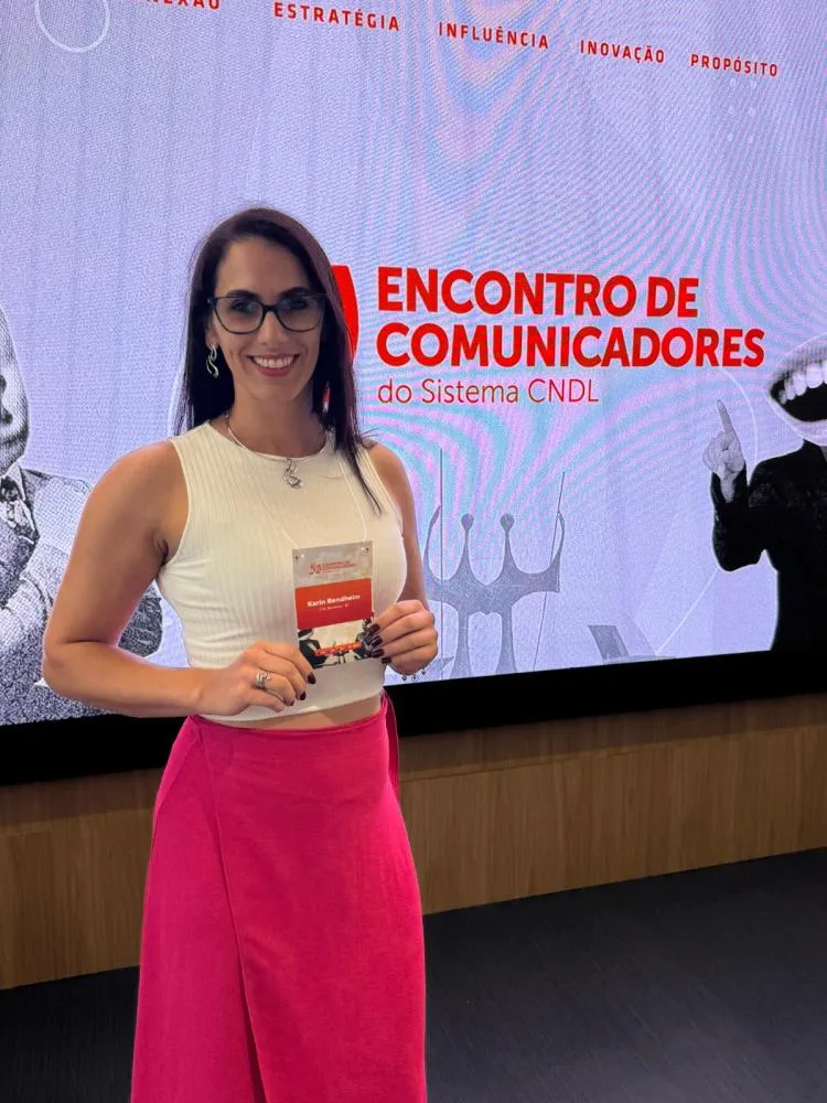 #PODEROSA - Pela quarta vez, a jornalista e assessora de imprensa Karin Bendheim teve um case selecionado para o Encontro Nacional de Comunicadores da Confederação Nacional de Dirigentes Lojistas (Sistema CNDL), realizado em Brasília. À frente da comunicação institucional da CDL Blumenau há mais de dez anos, Karin representou a entidade com a campanha “Amor Geracional: de pai para filhos”, case inscrito por ela e desenvolvido pela equipe da CDL. A ação destacou histórias reais de pais e filhos que empreendem juntos, fortalecendo o associativismo. Arrasou!