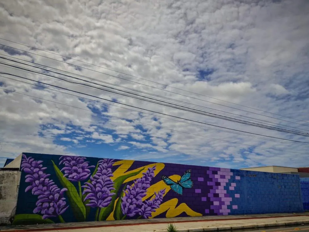 O bairro Meia Praia, em Navegantes, ganhou um novo destaque artístico. Um painel em grafite, intitulado 'Lavanda', agora decora o muro localizado no nº 2715 da Avenida Prefeito José Juvenal Mafra, próximo ao aeroporto. A intervenção chamou atenção de quem passa diariamente pelo local, renovando a paisagem urbana com cores intensas e composição harmônica.