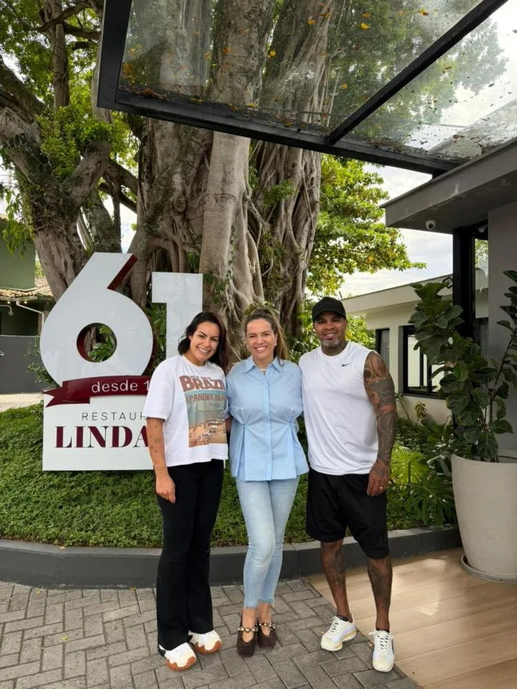 #ALMARE - O cantor Rodriguinho e sua esposa, Bruna Amaral, estiveram em Florianópolis na semana passada e aproveitaram a passagem pela cidade para almoçar no tradicional Restaurante Lindacap, onde foram recepcionados pela empresária Carol Pellegrini. Bruna realizou um procedimento na clínica BewikiCare, com a assessoria da agência de turismo médico ABTM.
