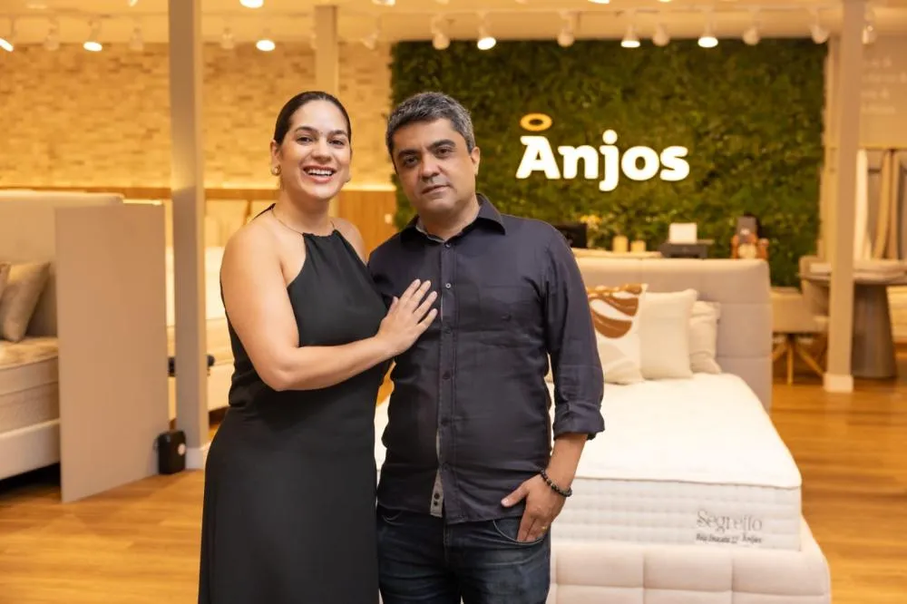 #NOVIDADE - O casal Mari e Rodolfo Paiva celebra uma nova fase nos negócios com a reinauguração da loja da “Anjos Colchões & Sofás” no Shopping Neumarkt. Está sensacional!!!!